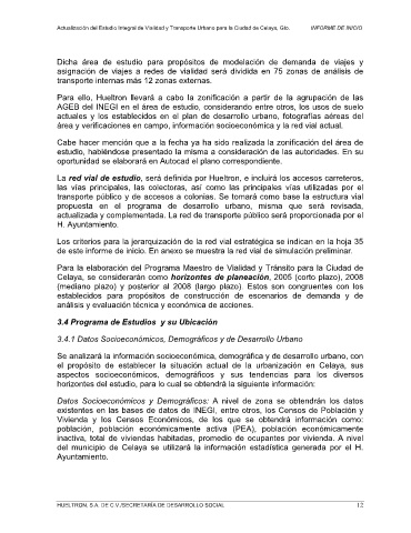 Actualización del Estudio Integral de Vialidad y Transporte Urbano para la Ciudad de Celaya, Gto. INFORME DE INICIO