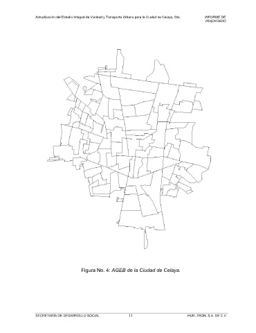 Actualización del Estudio Integral de Vialidad y Transporte Urbano para la Ciudad de Celaya, Gto. INFORME DE INVENTARIO Figura No. 4: AGEB de la Ciudad de Celaya. SECRETARÍA DE DESARROLLO SOCIAL HUELTRON, S.A. DE C.V. 11
