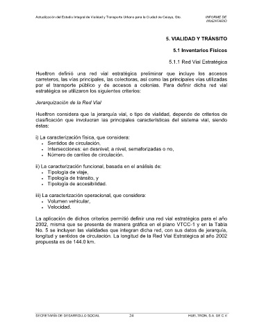 por el transporte público y de accesos a colonias. Para definir dicha red vial