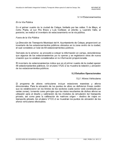 Actualización del Estudio Integral de Vialidad y Transporte Urbano para la Ciudad de Celaya, Gto. INFORME DE