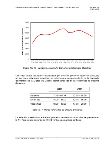 Figura No. 13: Variación Horaria del Tránsito en Estaciones Maestras.