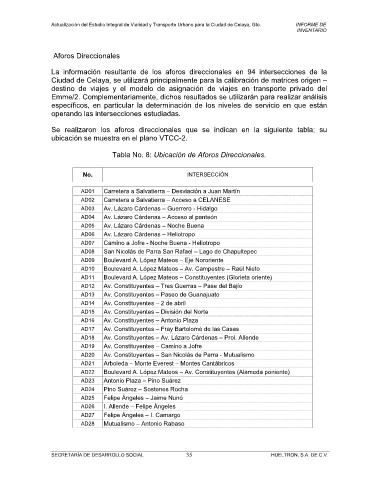 Actualización del Estudio Integral de Vialidad y Transporte Urbano para la Ciudad de Celaya, Gto. INFORME DE