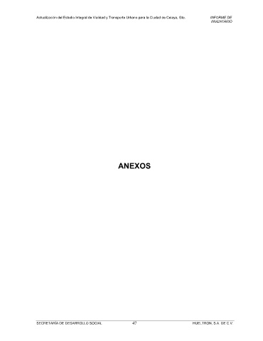Actualización del Estudio Integral de Vialidad y Transporte Urbano para la Ciudad de Celaya, Gto. INFORME DE INVENTARIO ANEXOS SECRETARÍA DE DESARROLLO SOCIAL HUELTRON, S.A. DE C.V. 47