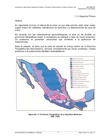 Figura No. 6: Provincias Fisiográficas de la República Mexicana.