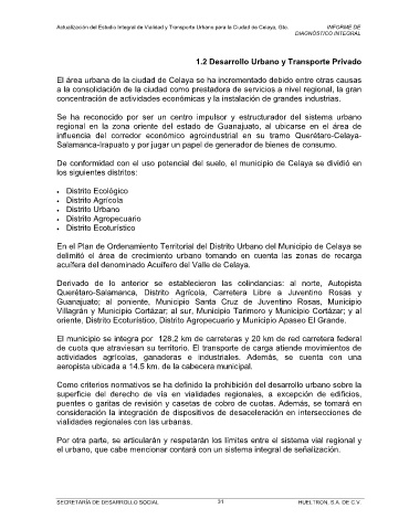 Actualización del Estudio Integral de Vialidad y Transporte Urbano para la Ciudad de Celaya, Gto. INFORME DE
