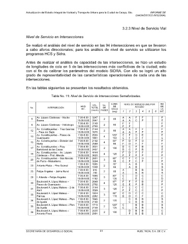 Tabla No. 11: Nivel de Servicio de Intersecciones Semaforizadas.