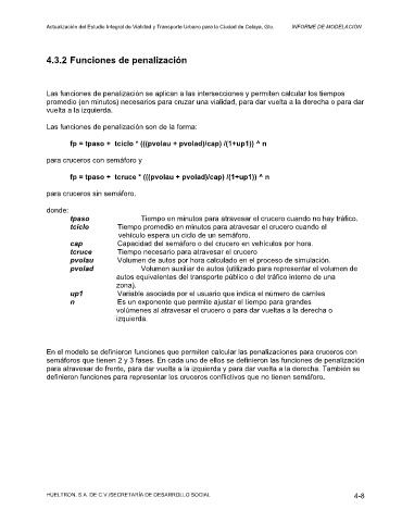 Las funciones de penalización se aplican a las intersecciones y permiten calcular los tiempos