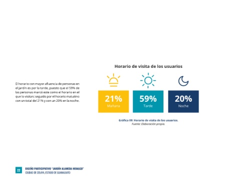 que lo visitan; seguido por el horario matutino 21% 59% 20% 15% 17.2% fue la de convivir, la cual obtuvo un 22%; luego,