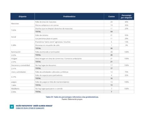Las personas pisan el pasto 11 29% Posteriormente, le sigue el tema de seguridad (14.16% del total), con- Luego, se encuentra la problemática de iluminación (3.97% del total),