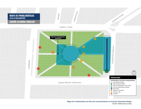 CIUDAD DE CELAYA, ESTADO DE GUANAJUATO Mapa 03: Problemáticas de falta de mantenimiento en el Jardín Alameda Hidalgo.