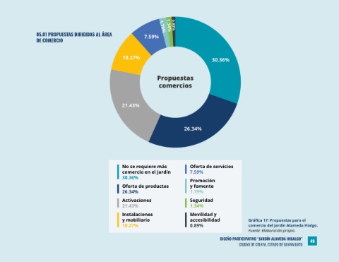 jardín por actividades con un 31.17%, limitar comercio con un 25.97% También se realizó la propuesta de poner juegos (2.19% del total), que Oferta de productos y fomento