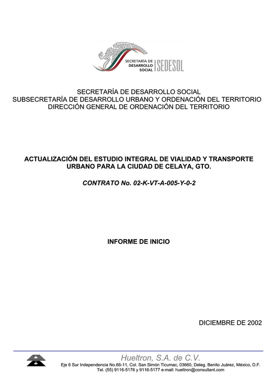 Actualización del Estudio Integral de Vialidad y Transporte Urbano para la Ciudad de Celaya, Gto