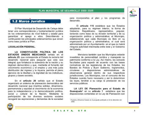 El Plan Municipal de Desarrollo de Celaya debe artículo 26 señala que el Estado
