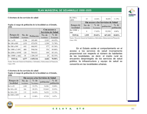 De 2500 a 14999 Rangos de localidad De 15000 y más TOTAL Censo 1990. C E L A Y A, G T O