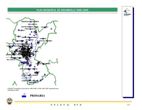 125 PLAN MUNICIPAL DE DESARROLLO 2000-2025 C E L A Y A, G T O FUENTE: Indicadores Educativos 1988-1989 a 1994-1995 SEP Departamentos PRIMARIA PRIMARIA Estadísticos SEG