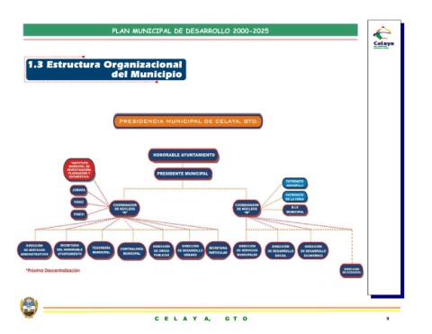 9 PLAN MUNICIPAL DE DESARROLLO 2000-2025 C E L A Y A, G T O del Municipio 1.3 Estructura Organizacional