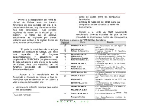 estación de ferrocarril de Celaya, Gto; tiene 15 Molinera de México S. A. Venustiano Carranza # 30 Naucalpan,