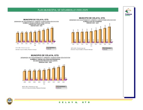 721 661 33 31 2025 2020 Pob. demandante UBS/aula MUNICIPIO DE CELAYA, GTO. DEMANDA DE EQUIPAMIENTO URBANO SUBSISTEMA EDUCACION ELEMENTO CENTRO DE ATENCION PREVENTIVA DE EDUCACION PREESCOLAR (CAPEP) PERIODO 2000 - 2025 786 720 40 37 2010