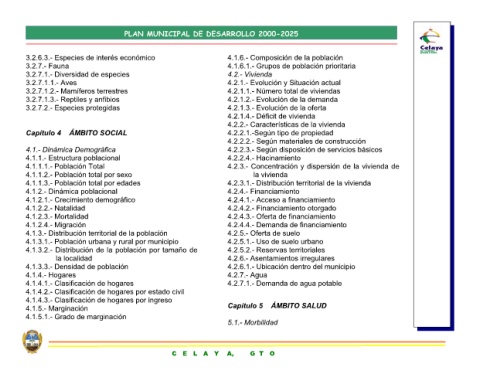 4.2.- Vivienda 4.2.2.4.- Hacinamiento 4.2.4.- Financiamiento 4.2.5.- Oferta de suelo 4.2.7.- Agua 5.1.- Morbilidad