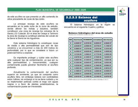 de este acuífero es que presenta un alto contenido de La principal recarga de este acuífero se encuentra en la parte norte de la zona de estudio, donde afloran las riolitas y basaltos, también constituyen una zona de recarga los volcanes de la Gavia y El Culiacán. En el área de Celaya a Tarimoro la zona de recarga la constituye además del volcán de Este sistema hidrológico lo constituyen rocas de media a alta permeabilidad que son de tipo volcánico y s